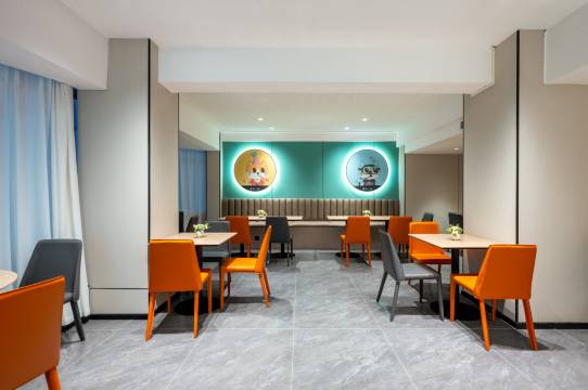 新装修的风格时尚活力,环境很好呀,城市便捷的标志青猫非常可爱☺️前台小妹妹服务特别热情给我们推荐了周边好吃的斜对面就是步行街晚上很多小摊好吃的很多,房间挺大的卫生也很干净很不错👍