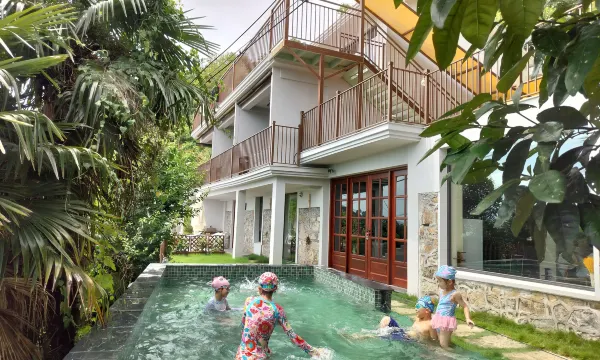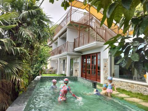 在半山上,闹中取静,住着很舒服,老板和管家也都很好。房间阳台有泡池,院子里有个小泳池。节假日,就是想远离人群,到小渔村吹吹海风