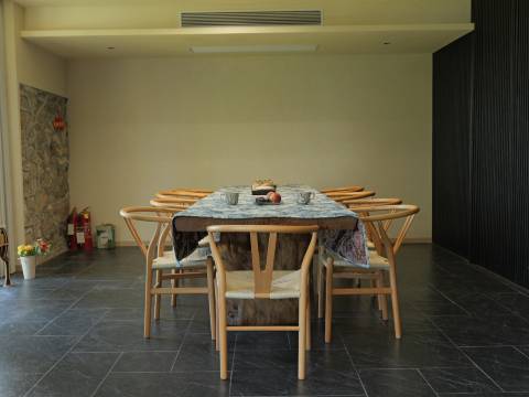 🏡民宿将自然与人文完美融合——入口处“人间烟火 最抚凡人心”的书法横幅瞬间触动人心;房间门牌用干花装饰的“202”木质牌透着精致温馨;连石材澡池都铺着清新绿瓷砖,泡澡时透过沙帘就能欣赏山林美景。