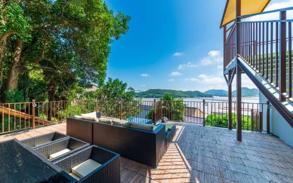 小庭院下午就晒不到太阳了,大家看着海喝茶聊天还挺舒服。民宿是天然氧吧