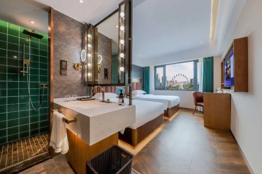 这家酒店真是给了我一个惊喜!位置就在地铁口,交通超级方便。前台小姐姐特别热情,办入住还送了我们小零食。房间比想象中大,落地窗视野很赞,床垫软硬适中,一觉睡到天亮。早餐种类丰富,那个现煮的面条我可以连吃两碗!就是浴室下水稍微有点慢,但不影响整体体验。下次来这附近还会住这里,性价比真的高~
