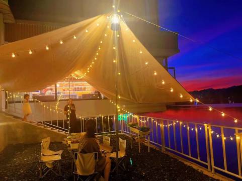 作为安化新晋的网红打卡地,布局与空间设计集民俗与潮流为一体,分为上下两层结构,一层是风情满怀,韵味款款的民宿,智能与自然交融,露台的留白,白日可赏烟霞云雾,夜晚可揽日月星辰,亦可火锅烧烤BBQ。另一层,是可近距离体验安化黑茶文化的旗舰店,一盏茶,一溪江,一夜好眠,于山水之间抚慰四方来客,尽享宿在资江畔,饮在山水间的神妙体验。