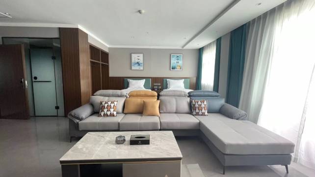 明星酒店拥有多种类型的客房,共计60间,每一间都经过精心设计与布置。标准客房简约舒适,设施齐全,为您提供一个宁静的休息空间;豪华套房则尽显尊贵与大气,宽敞的卧室、独立的客厅和精致的卫浴设施,满足您对高品质住宿的一切需求。房间内配备了先进的智能设备,您只需轻轻一触,就能轻松控制灯光、温度和窗帘,享受便捷的科技生活。同时,每间客房都采用了高品质的床上用品和隔音材料,让您在柔软的床垫上安然入睡,不受外界干扰。