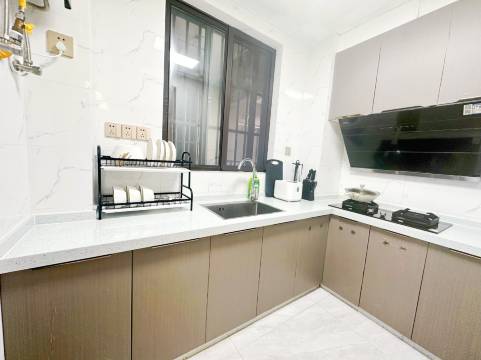 非常满意,实际的房型要比老板的图片要好得多,老板照的图片是手机照的,显得家里边儿设施陈旧但实际情况非常的新非常干净,房间特别大,床也很大。小区外就有一条吃饭的街有小超市买东西吃烤串非常方便,街上的东西有点贵,小区里边有孩子的游乐设施非常好玩,整栋小区非常的新环境相当好,还有跑步的步道。外卖也非常快。比想象中好的很多。