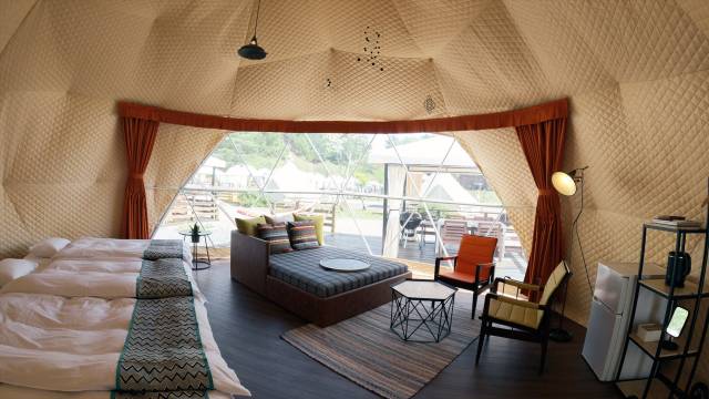 无需携带任何物品,在大自然中享用BBQ烧烤、在帐篷内的床上入眠。提供全新的露营方式。 null