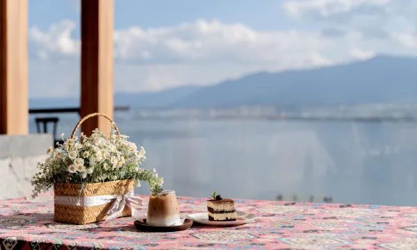 必须夸夸他们家的下午茶!现烤的鲜花饼外酥里嫩,配上本地酸奶和新鲜水果,坐在露台望着湖景慢慢吃,惬意到不想走。