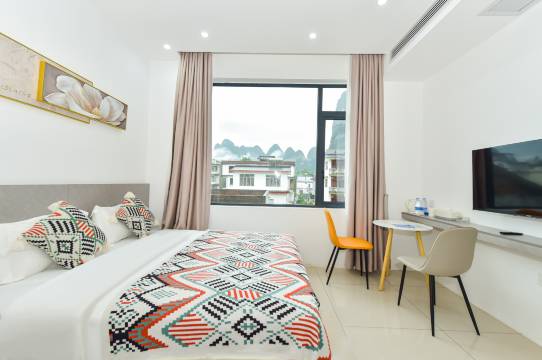 离漓江竹筏的兴坪码头特别近,走路几分钟就到了,房间很干净设施齐全,个人认为适合情侣入住,原因不多赘述。周边打车难,堵车是常态,酒店有租电动车的服务,要前往高铁站也可以帮忙叫车。