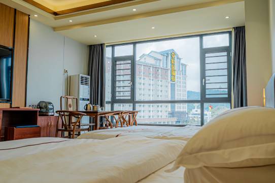 房间很大,很干净,热水足,暖空调也很暖。床品一看就是换洗勤的。枕头真的是乳胶。电视机好大。智能助手也很方便。房间没有异味。总之非常惊喜,性价比超级高,恨不得给7星。