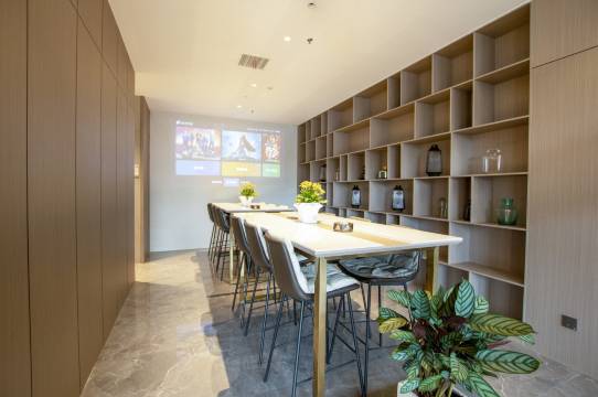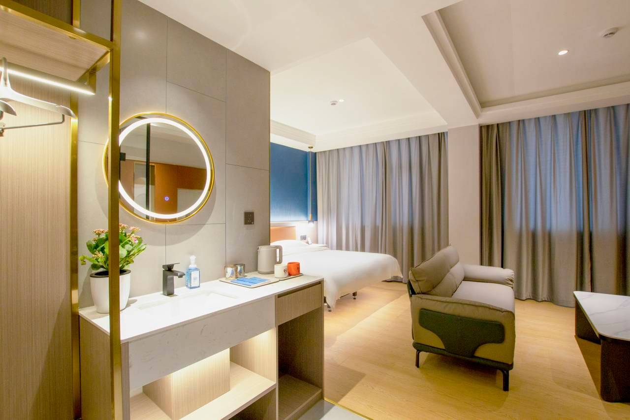 设施非常好,非常的高级主要是电视上还可以投屏听歌,衣服皱巴巴的也可以熨平还有洗衣机设施真的非常的齐全呀,环境也特别的干净,前台服务也特别得好,人也长得非常的可爱,大厅里泡的还有红茶放着周杰伦的歌曲真的非常的推荐,非常的满意
