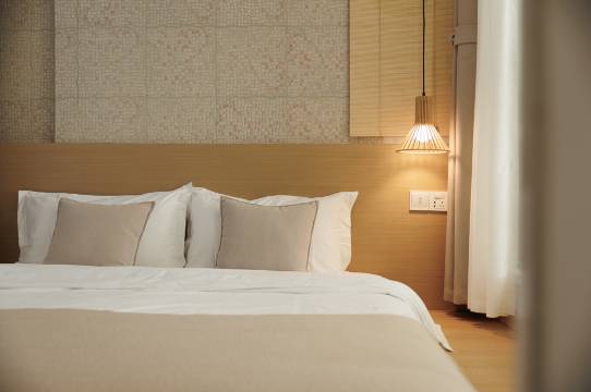 酒店将主结构保留,打通了楼层平面,让四面八方的新鲜空气和阳光🌞透进屋内,房型设计融合了南洋复古风格和现代室内设计理念,和潮州这座城市的风土人情十分协调。
