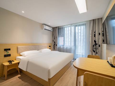【位置】本店位于成都市金牛区黄金东一路222号万裕生活广场B座,毗邻高新西区商圈和金牛工业园区,是通往都江堰、阿坝州、九寨沟等旅游景区的必经之路。【周边】距离地铁2号线金周路地铁站骑行仅需8分钟,周边地铁线路覆盖广泛(如2号线羊犀立交站),方便前往成都西站只需要3公里及市区其他区域。【餐饮】楼下聚集码头故事火锅、何师烧烤等餐饮品牌,附近有中海国际购物广场、爱琴海购物中心等商业体,满足生活需求。【品质】客房配置房间设计以简约商务风为主,配备喜临门床垫、50寸智能电视(支持投屏)、干湿分离卫浴,一次性浴巾面巾、部分房型带观景阳台,电竞房还提供2K高清曲面屏等专业设备。【本店特色】作为海友6.0版本酒店,提供“华掌柜”自助入住机(30秒入住/0秒退房)自助洗衣烘干机、微波炉、行李寄存柜和饮料贩卖机,提升效率与便捷性,我们秉承“安全放心、服务贴心、卫生放心、环境舒心”,希望为您提供舒适的体验。