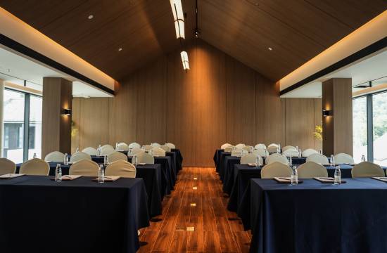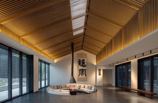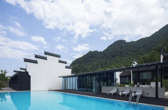 酒店位于《徐霞客游记》开篇首宿地梁皇山,整个酒店顺山势而建,依山傍水,保留中式古建筑风貌,形成细腻、丰富的东方度假院落。酒店占地面积12000平方米,拥有景观客房、中餐包厢、悦膳早餐厅、雀友棋牌室、霞光里大堂吧、悦享·会议室、山野草坪、儿童乐园、山野泳池等功能空间。