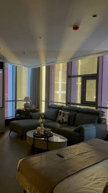 这次旅行住得最舒心的酒店,性价比超高,地段优越,交通便捷,出门路对面就是地铁站,楼下三阳广场商圈购物吃饭太方便了。全屋落地窗的设计,透过窗户就能看到市中心的繁华夜景,管家小服务贴心周到,知道我们一家三口住还升级了套房。推荐!