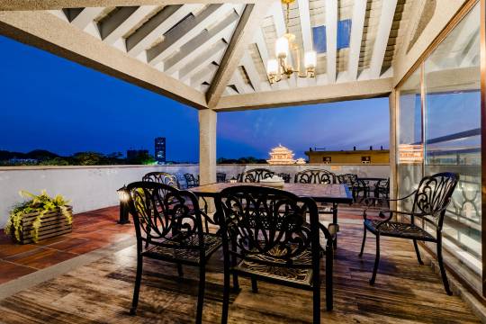 民宿是由1936年建成的民国建筑改造而成——经典客家建筑,红砖、彩绘地砖、水磨石、彩色玻璃、木制栏杆等民国元素在店内随处可见。特有的地理位置,露台是欣赏潮州江景、灯光秀的独特位置,从风格到摆设,从家具床品到浴缸洗漱用品一应俱全,让你拥有婴儿般睡眠,布草洁具均一客一换,入住嘉宾均可在天台茶座品一壶茶,欣赏潮州风光。一定要旅途疲惫的您住的舒心放松,给您独立的空间享受潮汕风情的温柔时光,氛围、设施、安静的环境,美丽的景色,是您在潮州温馨舒适的家! 期待遇见你。