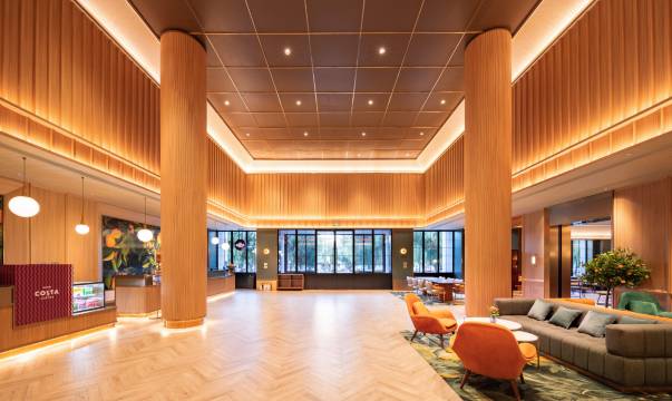 酒店很不错,大厅很大,大厅内有COSTA咖啡售卖。房间宽敞,干净整洁。酒店楼前停车场很大,停车方便。距万达广场不远。附近饭店很多,选择余地大。推荐!