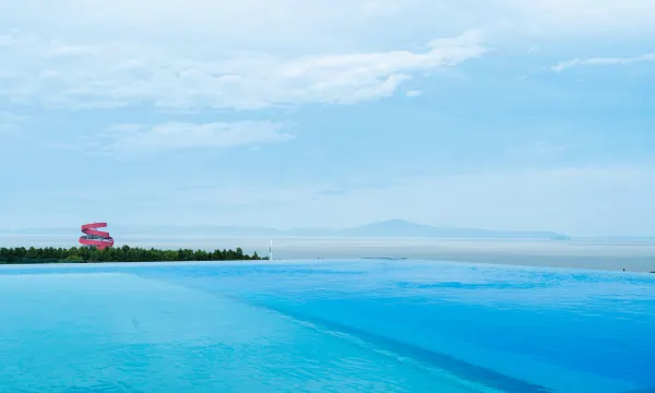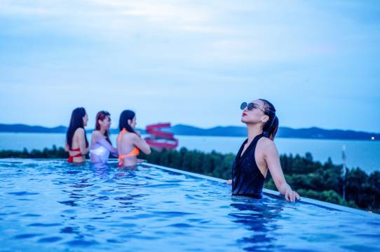 楼顶无边泳池可以看到太湖,而且泳池底部是透明的,准备好泳镜来游泳喔