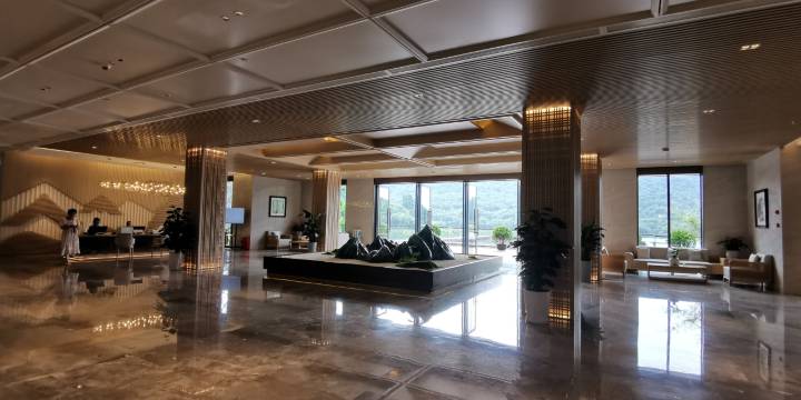 酒店座落于月坝度假区核心景点近月湖畔,背山面水,风景秀丽,景观视野开阔,植被覆盖率高,由综合服务楼、临湖合院、洋房、公寓等组成,占地面积近80亩,建筑面积1.43万平米,拥有全日制餐厅、五个中餐包间,会议设施设备齐全,拥有三个多功能厅/会议室,并配有健身房、咖啡厅、茶坊包间、KTV等相关配套设施,是集“休闲+住宿+会议+餐饮+娱乐”于一体的一站式综合服务设施,能满足游客休闲度假、会议、培训等多种需求。 隐匿于山水之间的世外桃源,将传统的建筑风格与现代的精致生活相结合,每一个角落都充满了诗意,一步一景,一转身便有一段故事,一杯清茶,一本书,一份宁静,尽享山水之间的诗意与悠闲。