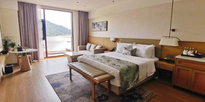 房间整洁卫生,周边环境很不错,青山绿水。刚入住的时候遇到点小问题,服务人员积极的解决,服务态度也不错。