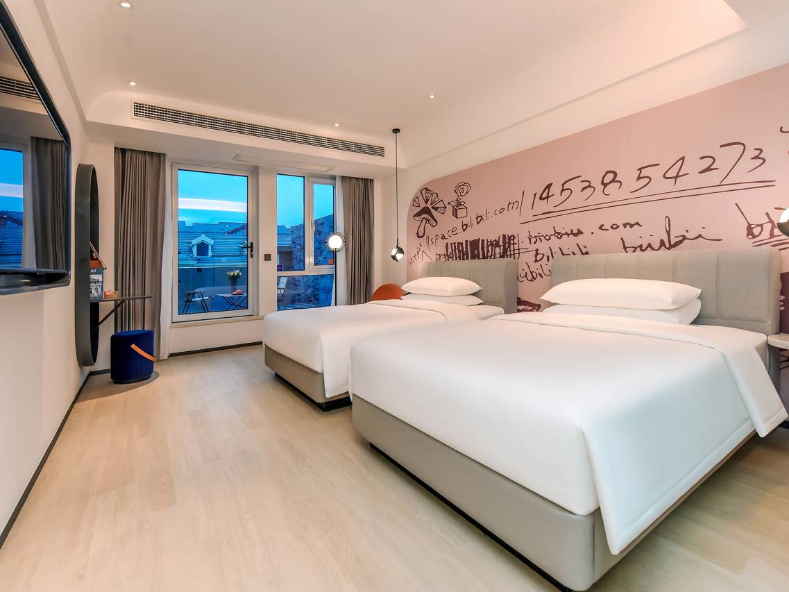 前台服务人员很热情,房间给我们免费升级了,还介绍了附近的美食,推荐的餐馆味道不错,房间面积挺大的床也很大,我们住的双床都是1.35的之前在别的酒店很多都是1.2的,设施也比较先进,喊小度就能控制开关,退房还送了我们伴手礼非常不错