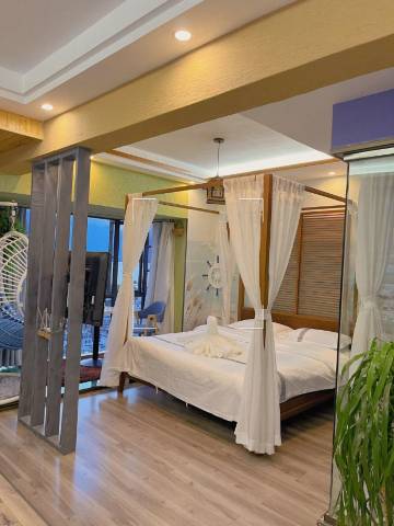 房子座落在海边旁,睡在床上就可以赏景,人性化的设计,三个大床房配3个卫生间