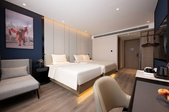 我们是朋友出行,订的是双人床,卫生间干湿分离,环境整洁,安静,可以好好休息。办入住的时候,前台小哥哥很贴心帮忙拿行李,入睡前还送了我们热乎的牛奶,还有房间里早就放置好的面膜,洗护及防晒用品,水果,一应俱全。晚上我们睡前没开制氧仪,凌晨高反睡不着,临时求助前台开制氧仪,响应非常迅速,有一次性鼻吸管用来吸氧,也可以外放式吸氧,让我们获得温暖舒适踏实的休息,酒店附送的自助式早餐也很丰盛,比自己找外卖或者早饭要方便太多,为第二天的行程充分准备,总的来说,服务体验极好,推荐入住!