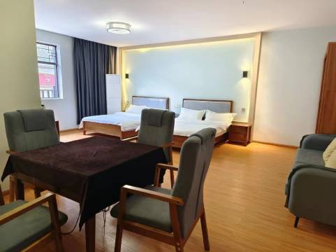 在镇上,统一开发的地方,周边有吃的……房间超级大,装修一般般,卫生还可以……整体不错……