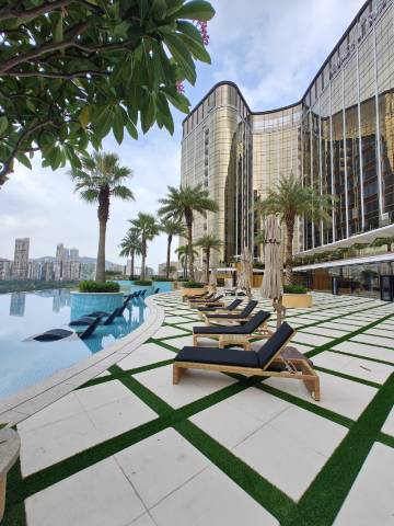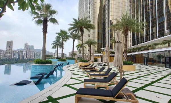 酒店公共设施更是加分项:湛蓝池水和澳门塔同框,二楼无边泳池简直是为拍照而生;健身房的落地窗对着新葡京方向,边跑步边俯瞰城市天际线。
