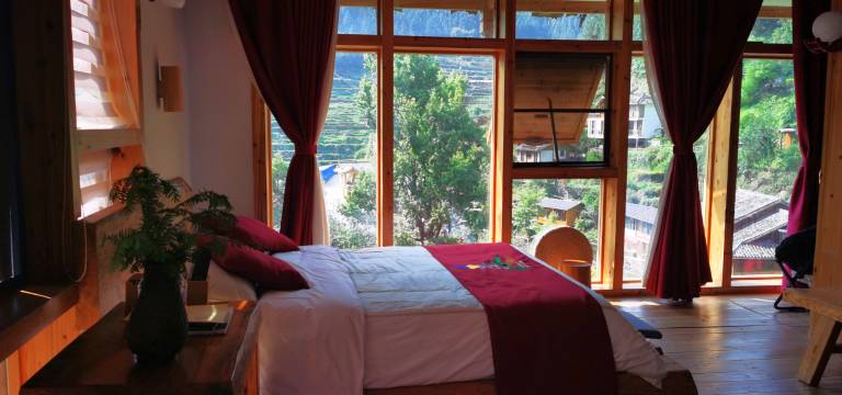 很原生态的民宿,周围环境很好很安静,晚上听着溪水声睡觉,睡眠质量特别好,房间很大,屋顶很高,很舒服,虽然在水边,但一点都不潮湿。入住当日正好是寨子过节,老板热情邀请我们一起吃饭,很多侗族名菜,还有侗族琵琶弹唱助兴,非常特别,很惊喜的一段旅程。唯一不足就是交通不便,公共交通出行的不建议选择。