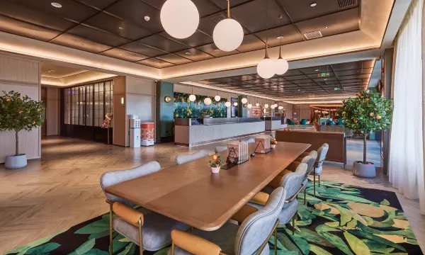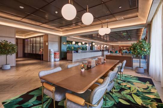 【桔子酒店】将健康及可持续发展的生活态度,秉承阳光,健康,活力的全新品牌理念,心存对大自然的热爱,重新定义健康的生活方式,传递认真生活的态度。产品设计回归「桔子」本质,强调开放、自由、天然特性,使空间有田园清新之感,并佐以大量植栽和天然有机蔬食,在加州阳光般的清新自由中感受自然之美,在自由表达的态度中感知细碎生活里的美。酒店独特的设计风格深受客户喜爱,房间全屋智能客控并配备65寸液晶电视、电动窗帘等。同时由清华声学所设计的酒店隔音系统,保证宾客一夜安静睡眠,为宾客提供优质、舒适的休憩环境,给予客人新鲜感与艺术感双重体验。