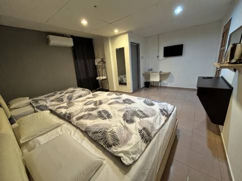 一家还不错的酒店,智能电视、空调等设施都能正常使用。令人惊喜的是,这里的WiFi信号非常强,我们甚至可以在墙上的小电视上看YouTube。酒店在二楼,但是没有电梯。不幸的是,我们到达的那天是周六晚上,下着雨,酒店附近有夜市(Pasar Malam),停车位很难找。老板!我觉得是时候换一下床和枕头了……一个额外的薄枕头要5令吉,我觉得这太离谱了!
