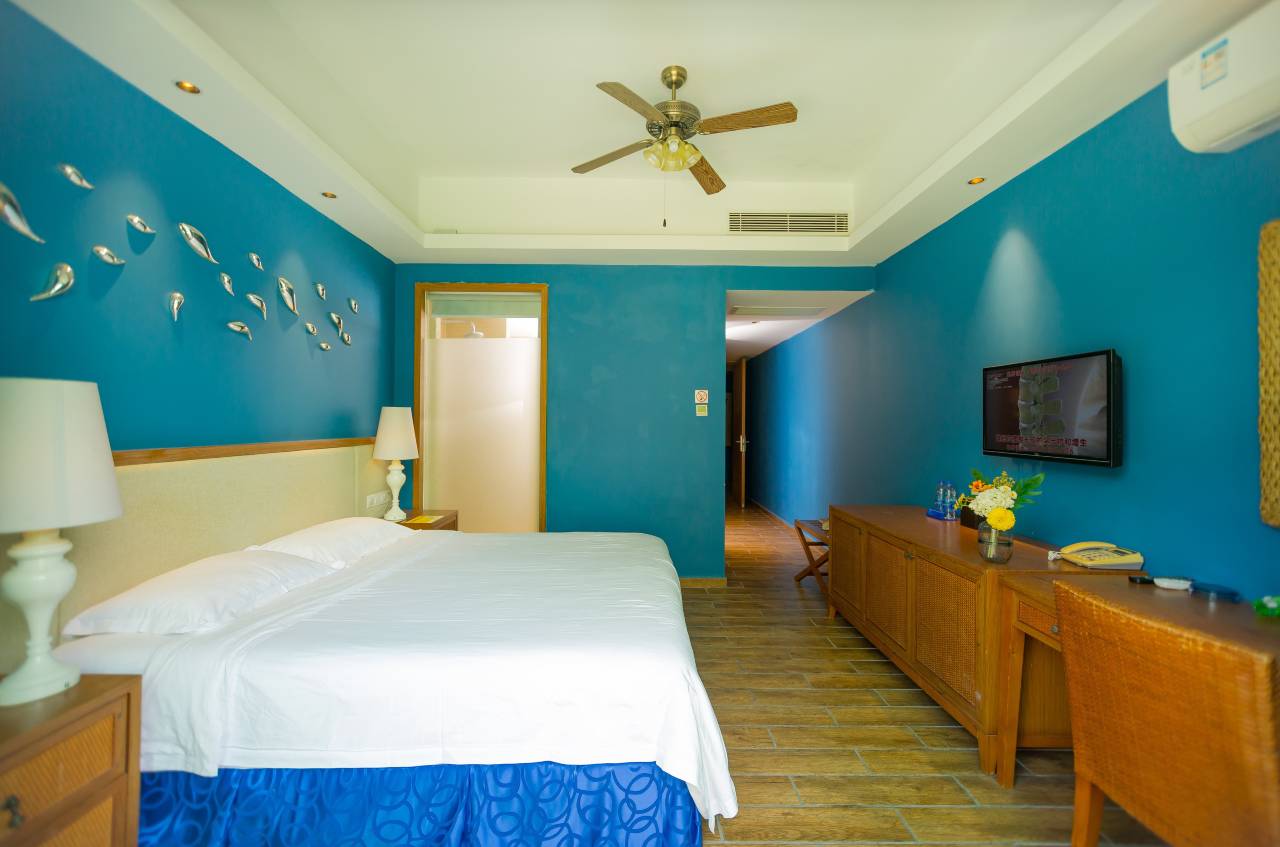 酒店山水相连,海水清澈,沙滩干净,共7层,拥有多种房型客房,其中有带空中花园的水天一色房,配备停车场、电梯、电视、电脑,会议室,烧烤,KTV等设施,周末节日远离城市的烦恼,充满大自然的气息,和家人放个假去海边吹吹海风,看看日出日落,出海垂钓捕鱼,享受制作自己的劳动成果,无论是亲朋小聚还是公司团建都是非常理想的度假休闲场所