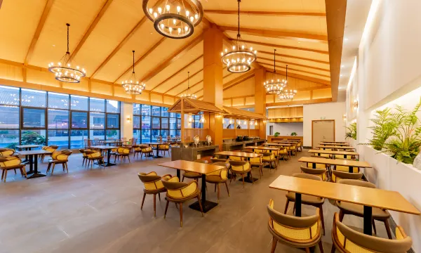 住过了客房在享受一下温泉酒店的高档餐厅,餐厅主厨是知名厨师,带领厨师团队可以为您打造出既美味又健康舌尖上的生活,如果您不是一个人来到这里,我们还有16人大包间,和两个12人连通包间,包间内有独立的卫生间,高清电视,红木餐台,名贵沙发,既高档而不嫌奢华。享用过美食后可以到酒店温泉区域,享受真正的温泉水健康泡澡生活,让身体每寸皮肤都能享受到来自地下20千米深天然矿泉,给自己的身体做一次深层健康护理。酒店游泳池也是孩童嬉水玩耍的更好场所,水深适宜、温度适宜。酒店还配有KTV和健身房,功能齐全,都是尊客度假生活好场所。