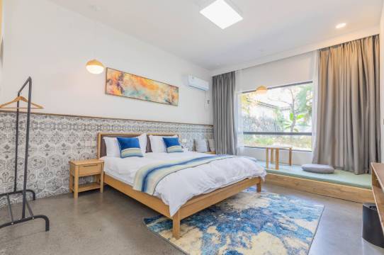 民宿房间内设有独立空调卫浴,免费无线网络,整体建筑风格简洁现代并簇立在1400平米的中式庭院之中,可以生日派对,小型团建年华,烧烤BBQ,篝火晚会,露天电影,棋牌等活动。