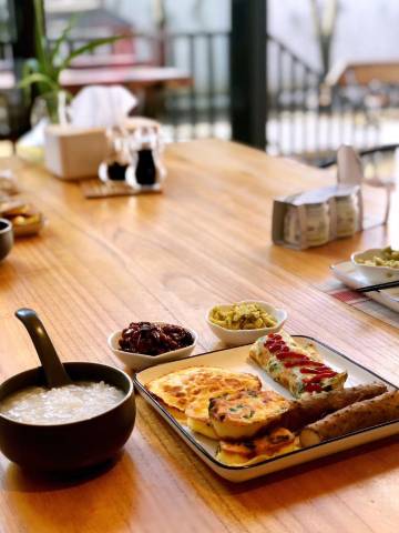 在这里,我找到了“偷得浮生半日闲”的意境。小院里花草繁茂,猫在打盹,风在摇它的叶子。房间里的每一件旧物似乎都有自己的故事。不像是旅客,倒像是短暂地成为了这里的主人,老板还主动提供了许多水果和好吃的,特别小月饼味道特别赞!让我在这个假期度过了一段静谧而美好的时光。