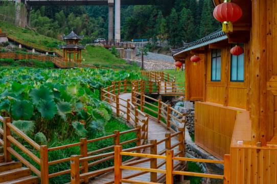 客栈座落在四联村里,从江站打的过去约10分钟,自驾更方便,下高速拐进去没多远,7月正是荷花遍开好时节,走去房间的路上荷香一片,在房间的落地窗也可俯瞰整个荷塘!在这里,风景美如画,生活在风景里!