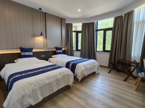 设施和环境:民宿的房间就如店家给的图片所示,中规中矩,房间较小,但是整体智能化高,水够热够稳定,在山里感觉不输城市里的酒店。出了房间,外面的环境就是very nice了,四面环山,空青清新,天高云淡,花草繁盛。