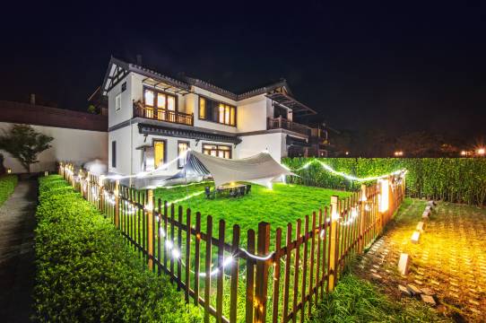 酒店位于莫干山风景区东侧千亩别墅大盘融创·莫干溪谷。莫干溪谷为融创占地4000亩的江南美学田园风格别墅群,并倾力打造了一个JOYJOY欢喜乐园大型亲子配套,内有丰富的休闲娱乐配套,包括喜市商街、萌宠乐园、儿童木乐园、知稻学堂、小小部落、稻里食坊、樱花谷、登山步道等等。别墅多为3居室中式田园的装修风格,自带独立的花园庭院。小区距离莫干山风景区车程约20分钟,距离庾村文化市集车程约23分钟。体验莫干山文化、当地人别墅生活和当地特色高端饮食皆近在咫尺!
