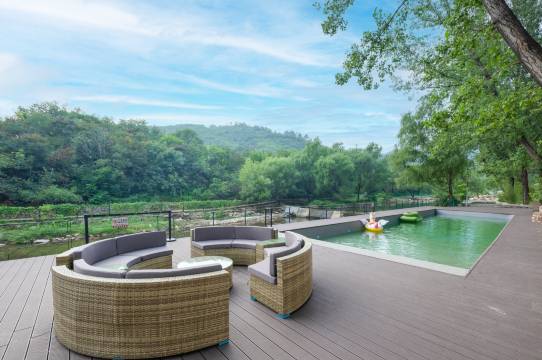雁溪度假村,坐落于神堂峪附近,依山傍水,与大自然融为一体。餐厅以怀柔特色菜为主,这里有大自然的原始感,所见之处即是绿色,让长时间处于城市中的人,心中增添一片宁静,打造一种原生态的感觉。酒店占地约14亩,约9400千平,内配备特色餐厅,水吧台,多功能会议室,KTV,泳池,戏水池,锦鲤观赏池,沙坑区,免费停车场以及观山栈道,酒店景色一览无余。