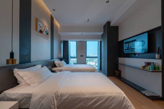 进房间就惊呆了,太喜欢了,订的大床房,房间看到很舒服,比较清爽,光线很好,全智能家居,都不用自己去拉窗帘,卫生打扫的很干净,前台服务人员也很热情,态度很好,很温柔,客房大姐服务也很周到,做事情也很细心,下次还会再来