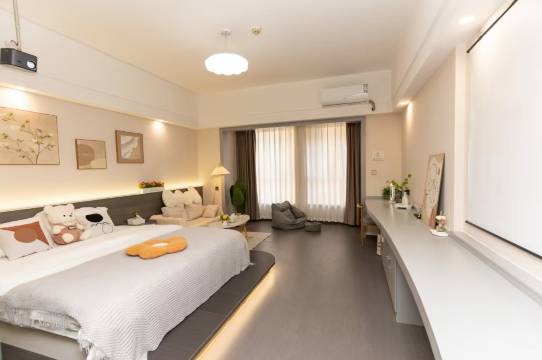 这家民宿无敌了,地理位置超棒,楼下就是商场,美食街,交通便利,出行可太方便了。投影的质感很好,高清大屏幕,住在这家民宿我睡的很舒服和踏实,房间隔音很好很安静,就连窗户都是遮光很强的双层帘,房间卫生做的很好,很干净,反正就是非常满意,性价比超高,值得推荐的民宿!👍👍👍