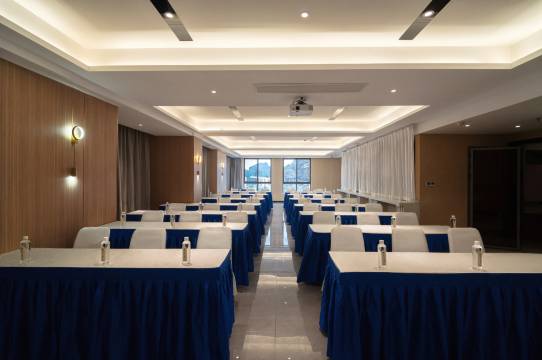 您可以选择入住豪华大床房、智能大床房、豪华情侣房、豪华双床房、豪华娱乐房等不同类型的房间。我们还设有一个多功能餐厅,为您提供当地的美食和精美菜肴,也适合举办各种活动和小型商务会议。酒店提供室内外停车50个位,方便旅游大巴停车。