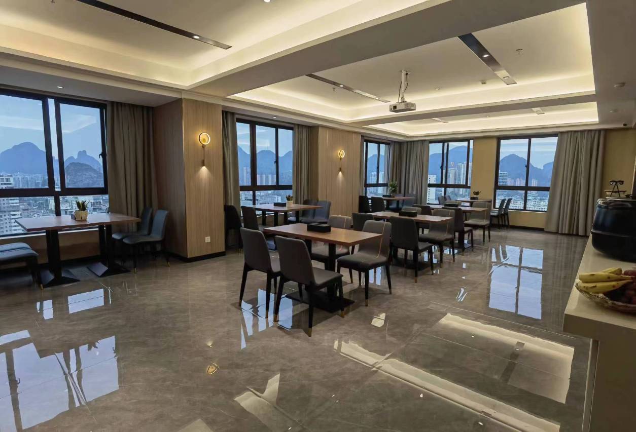 酒店入住感不错,装修很高大上,设施设备也很齐全有洗衣房,健身房等,酒店酒店旁边就是购物商城,服务员个个都很热情,前台小陈小姐姐服务周到还给我们免费升级了智能房间。早餐也特别丰盛,还有正宗的桂林米粉,外卖也夜宵可以送到房间,很方便。
