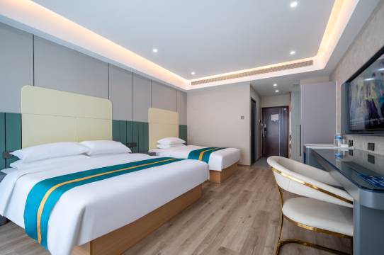 酒店环境很好,设施一应俱全,便宜实惠,卫生很干净,住的放心,前台小姐姐服务也很好,给我免费升级了套房,房间很大,风景很好。酒店位置也很好,我是来山体上学的,离山体就隔了一条马路,很方便,下次还来住!