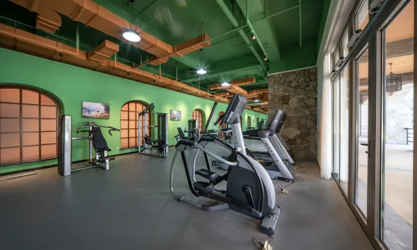 酒店装修设计很漂亮,有健身房还有乒乓球室。