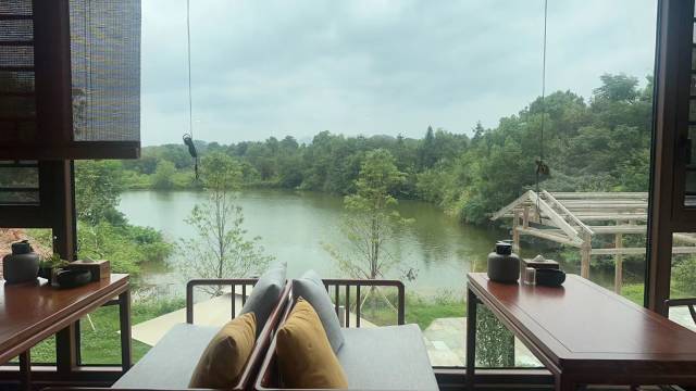 设施:房间是套间,空间大,床也大。窗户风景很好,有山有水。