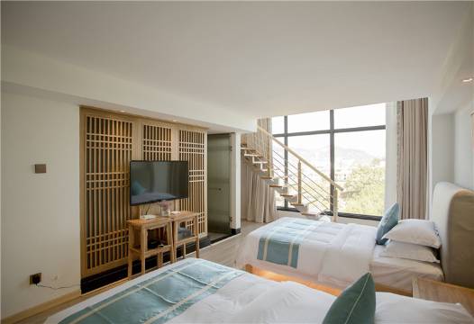 和同事各自带女儿过来玩[呲牙]民宿真的非常干净,环境特别好,玻璃外面的风景特别好。订的这个榻榻米双床里泡茶的地方真的非常舒适,适合度过惬意的下午时光。下次再多带几个同事过来一起住,一起去负一楼免费的麻将室打麻将去[呲牙][呲牙]
