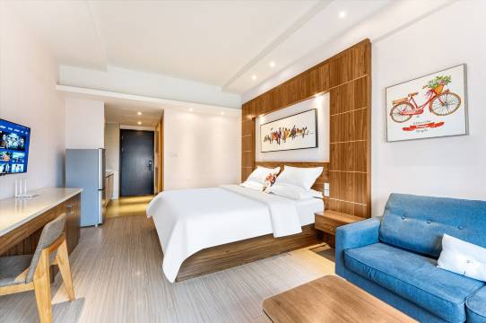 房间很大,很舒服,该有的东西都有!洗衣机 冰箱 衣柜!这一年跑马都选择公寓,比酒店还是舒服很多。订酒店之前对比了很多,看评价感觉有点缺点,到店后发现还是超预期,很干净 环境很好 很舒服的一次体验。明年有来玩继续选这里 周边吃喝交通都很方便,老板服务也很好
