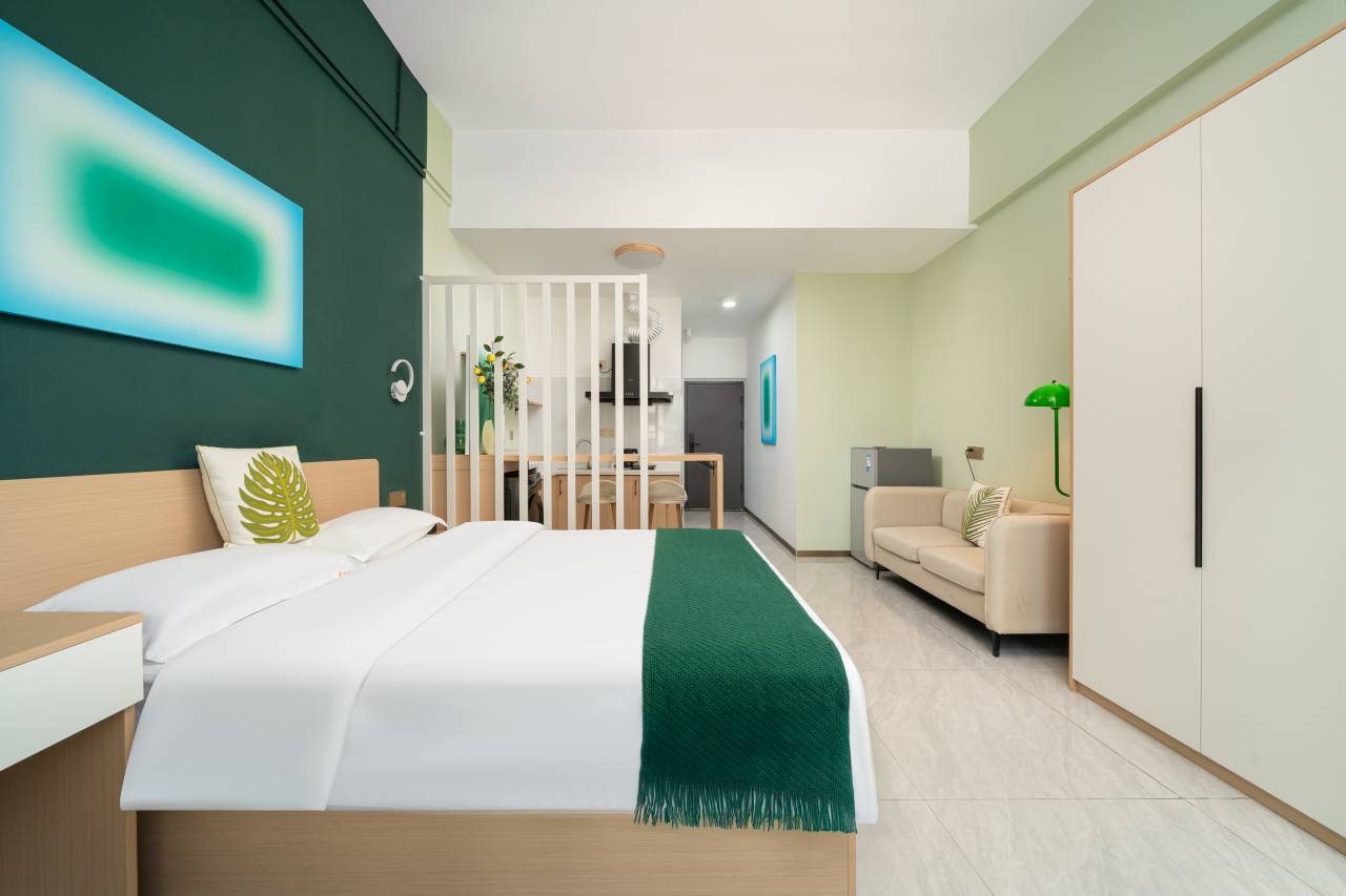 舒服的不想离开,我到的时候说是订的房没了给免费升了房,周边虽然有些冷清但是离火车站很近,设施很齐全,有一种小家的感觉很温馨。