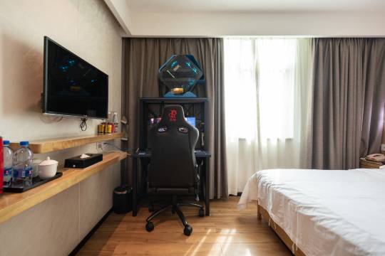 欢迎尊贵的您莅临我们的酒店,这里是您商务出差或休闲度假 的理想之地。 酒店全房型配备原高于市面上电竞的配置,高清分辨率,27寸 大屏,机械键盘,机械鼠标,电竞专属桌椅,电竞耳机,给您 竞技比赛级的电竞体验,合适的价格,出差办公还是和兄弟开 黑都是很不错的选择。 我们酒店坐落于城市的繁华中心,交通便利,周边汇聚了众多 商业购物中心、文化景点和美食街,让您的旅程更加丰富多彩 酒店内部装修典雅豪华,充满现代气息,同时不失温馨舒适的氛 围。我们拥有宽敞明亮的客房,房内设施齐全,包括舒适的床 铺、高清液晶电视、高速网络连接等,确保您在繁忙的旅途中 得到充分的休息。此外,我们还设有多种房型以满足不同客人 的需求,无论是商务出差还是家庭旅行,都能找到满意的住宿 选择。