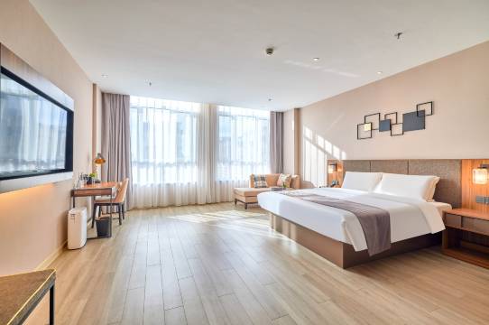 酒店装修采用英伦现代设计风格,时尚典雅,简约精致,酒店配备多功能会议室和宽敞明亮的早餐厅,设有智能客房系统、自助入住系统、送物机器人、现磨咖啡吧、健身房、商务区、自助洗衣房、全酒店覆盖wifi、两个停车场和vip夜宵服务。酒店设有大床房、高级大床房、高级双床房、安睡房和家庭房等多种房型,能满足不同客户的需求,所有房间全部采用梦百合0压床垫,舒适温馨。酒店是首旅集团旗下的中高端品牌酒店,立志于为您提供更好的服务和更舒适的入住体验,在城市一隅为您提供一个可以随时自在休息的场所,是商务出行优质的选择,我们在这里期待您的到来。